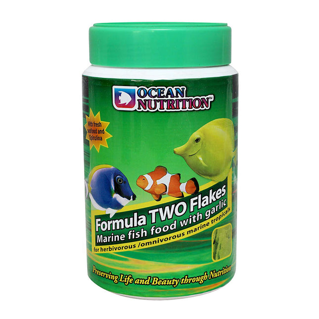 Ocean Nutrition Formula Two Flakes are an excellent flake diet for both herbivorous marine and freshwater fish. This algae boosted diet targets the needs of all marine and fresh water herbivorous fish. Formula Two Flakes contains abundant marine algae, kelp, garlic and a wide variety of key ingredients.Feed as much as you fish will eat in 2-3 minutes. Distribution 3-4 times per day.Features of Formula Two Flakes: