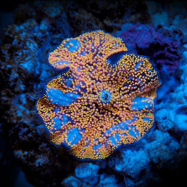 WYSIWYG The Interstellar is the most highly sought-after variety of Discosoma. They have a blue base and countless orange speckles on its face.