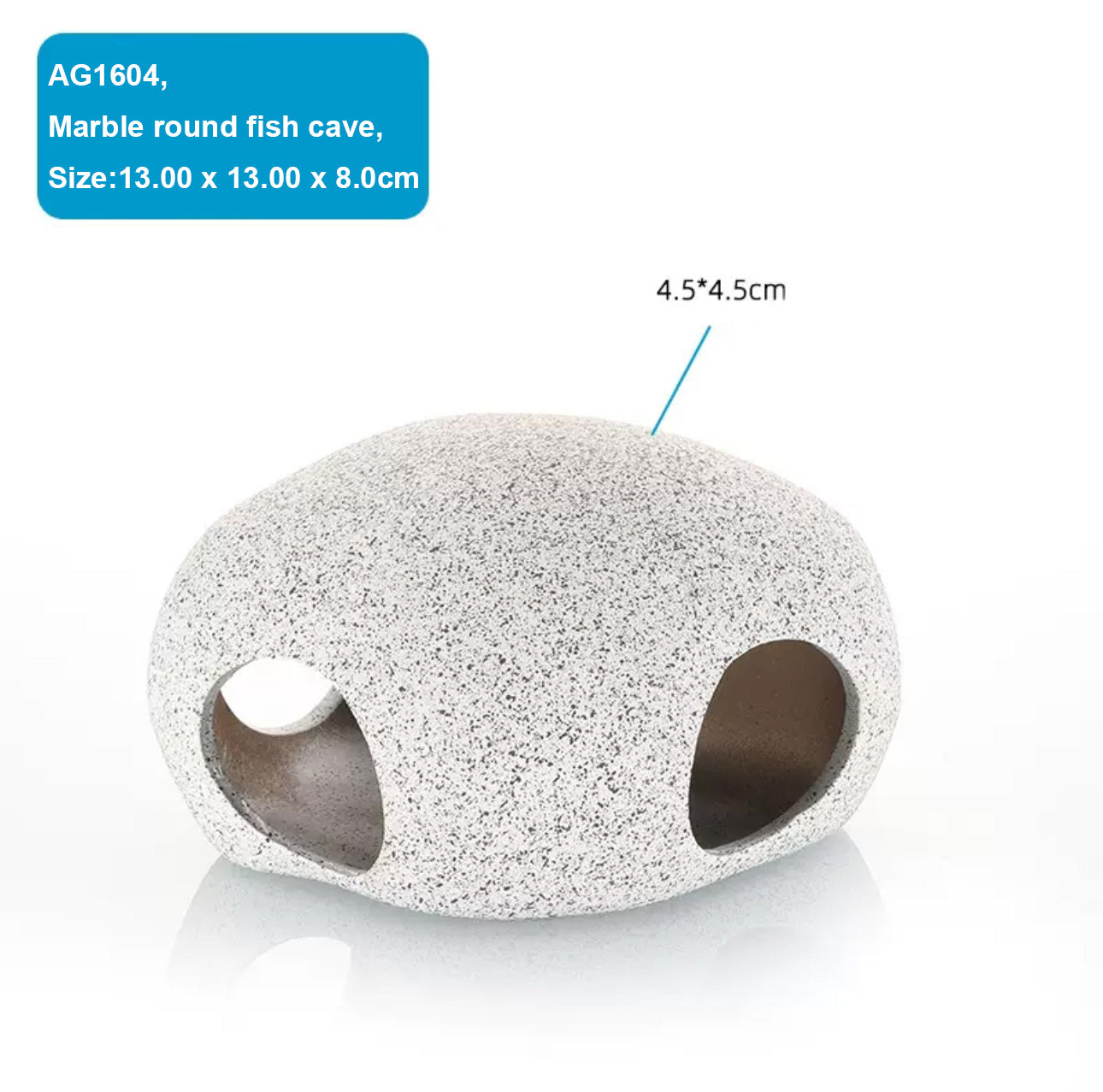 - AG1001 - Round Cave Marble small 8.3 x 6.7 x 5.5cm, hole size 2.7cm