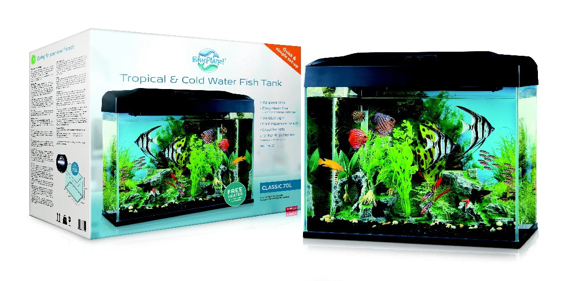 Blue Planet Classic Aquarium 70L is a premium tank designed to provide aquatic pets with everything they need. This starter pack includes a 70 litre capacity aquarium complete with hood lid, a fully pressurised 3-stage filter to help maintain and clean the tank, and a built-in water pump to help you provide your pet fish and reptiles with a safe, clean, and habitable environment to enjoy. The key features of the Blue Planet Classic Aquarium 70L are: