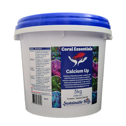 Our Coral Essentials Calcium Up is concentrated Calcium Chloride granules at 94% purity, in a handy 3kg bucket.