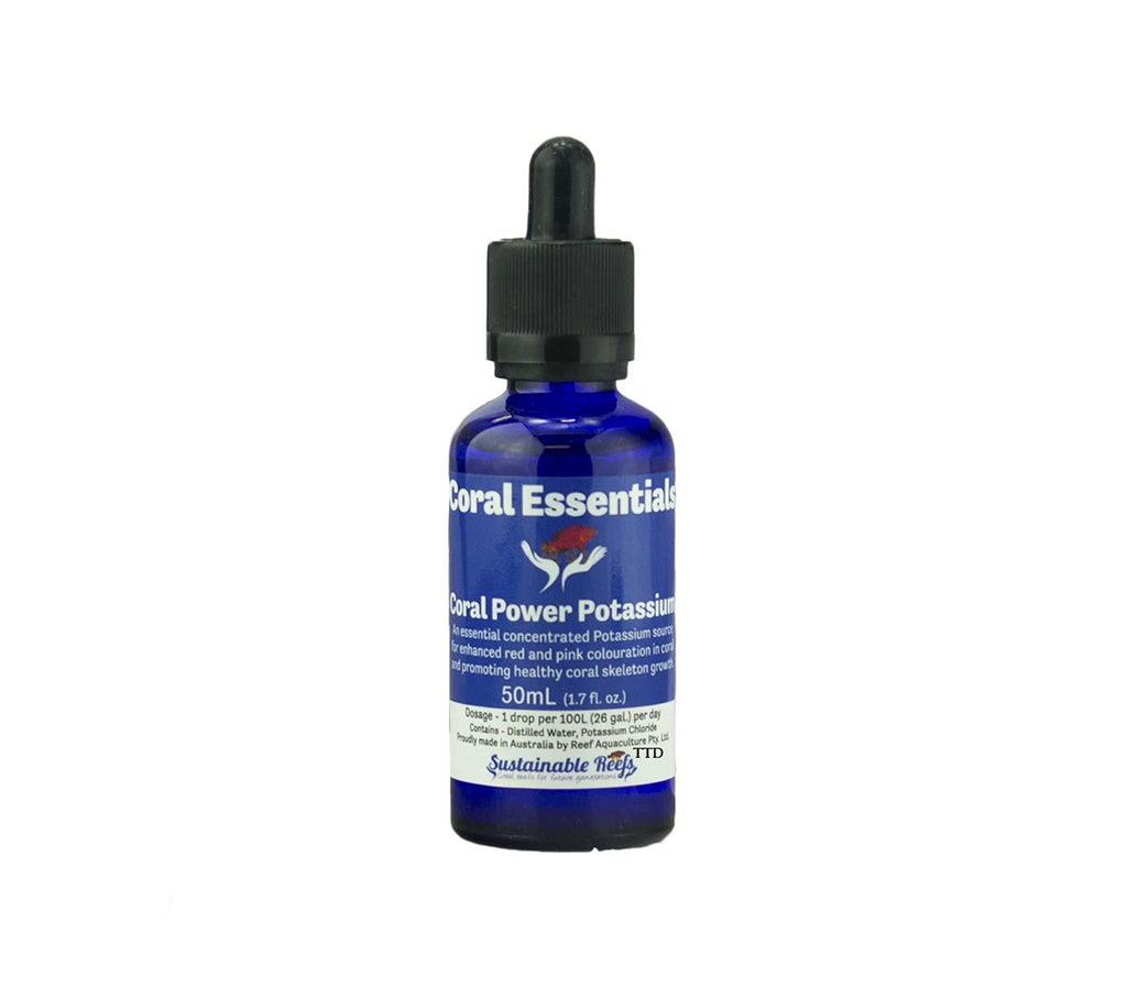 Coral Essentials, Coral Power Potassium is a concentrated solution of Potassium Chloride, 150,000ppm for marine aquariums.