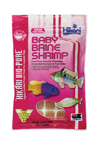 If you're looking for something to feed fry or other small mouthed fish, Baby Brine Shrimp is an excellent choice. Gut-loaded and frozen at their peak nutritional stage, Hikari® Bio-Pure® Baby Brine Shrimp offers your aquatic pet nutrition you cannot duplicate at home.